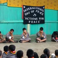 International day od peace began by lighting of butter lamp by the SSA commissioner. Different activities were conducted for the different level grade students like rope work, games and dances. Everyone enjoyed as it was applauding moment to be cherished and embraced.