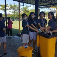 นำนักเรียนทำกิจกรรมจิตอาสาเก็บขยะในโรงเรียน