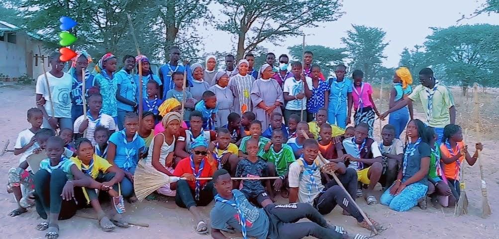 Titre : Paroisse propre. 1) Nous avons nettoyé la cours de la paroisse Saint Michel Archange de Sandiara le 03 mars 2023. 2) Nettoyage de la maison des soeurs Clarisse de la paroisse à Ndollor le 04 février 2023