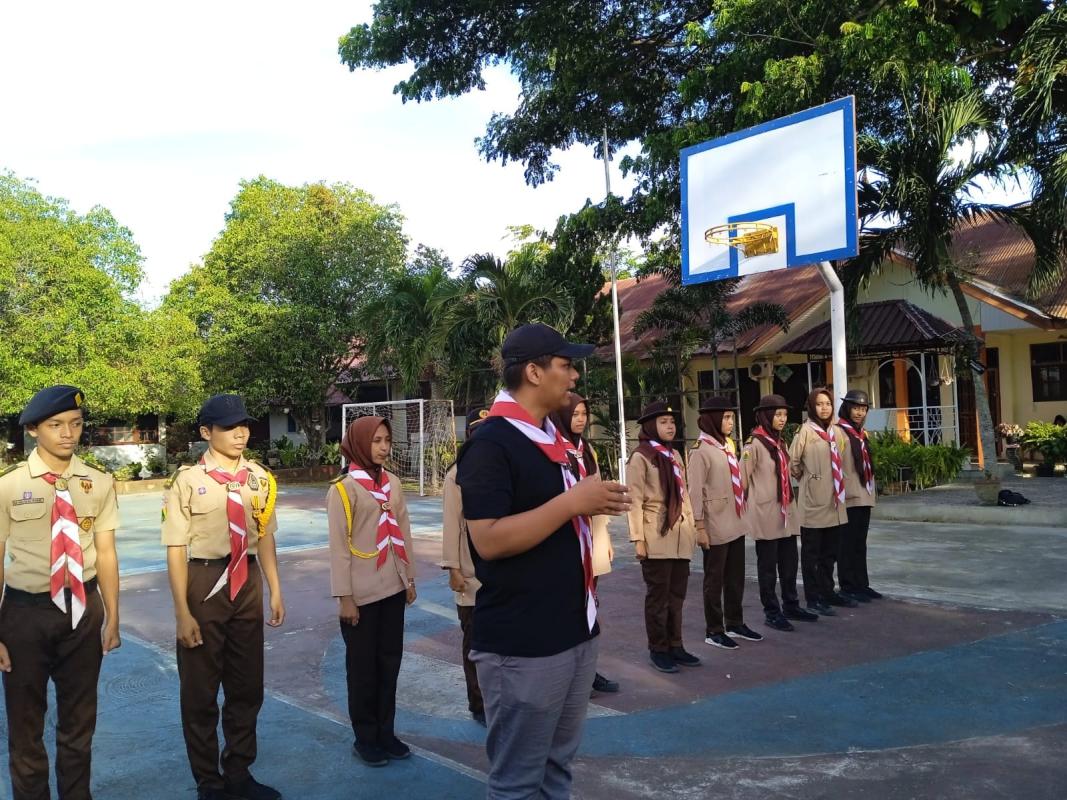 Pengarahan terhadap peserta latihan perdana di Gugus Depan SMAN 1 Darul Imarah dan pengarahan terhadap program yang akan dilaksanakan untuk 1 semester kedepan.