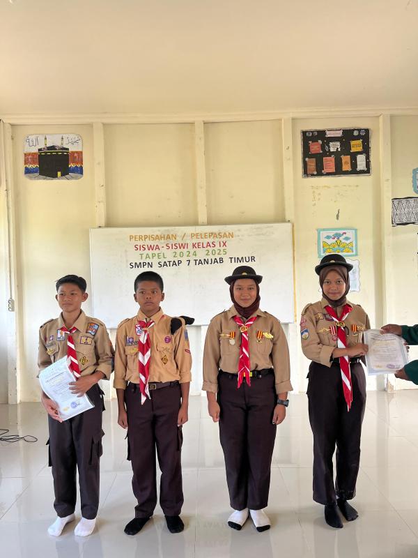 Pelantikan/Penyematan Brevet Kepada Anggota Pramuka SMPN Satap 7 Tanjung Jabung Timur. Kegiatan ini untuk dapat meningkat skill dan kemampuan peserta didik