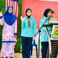 Perhimpunan bulanan Pengakap di sekolah. penyampaian hadiah kepada pengakap terbaik