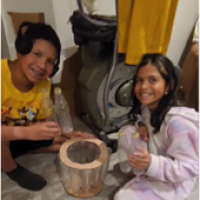 Es así como decidimos ( Luis y Eli) realizar un papelera con los tachos de jugos desechados en una tienda de desayunos.