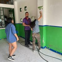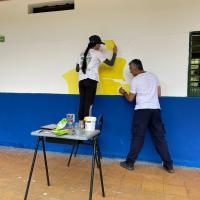 - Pintura en columnas, paredes, cancha, comedor y aulas de la institución.