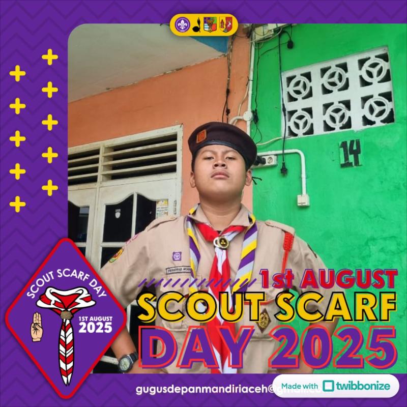 Halo semua nya perkenalkan nama saya muhammad achdan, siap menyukseskan scout scarf day 1 agustus 2025 World Scout Scarf Day (sering disingkat World Scarf Day) adalah hari peringatan tahunan yang dirayakan setiap tanggal 1 Agustus oleh anggota dan pendukung Gerakan Pramuka (Scouting) di seluruh dunia. Apa Yang Diperingati? Hari ini memperingati didirikannya perkemahan pramuka pertama di Pulau Brownsea, Inggris, pada 1 Agustus 1907 oleh Lord Baden-Powell, pendiri gerakan kepanduan dunia. Perkemahan tersebut menjadi awal resmi berdirinya Gerakan Kepanduan (Scouting Movement). Tradisi Perayaannya Pada World Scout Scarf Day, anggota pramuka di seluruh dunia mengenakan syal atau setangan leher pramuka (scarf/neckerchief)—terlepas apakah mereka sedang berseragam lengkap atau tidak, dan bahkan jika mereka sudah tidak aktif di organisasi sekalipun. Tujuannya adalah untuk: 1. Menunjukkan kebanggaan sebagai bagian dari Gerakan Pramuka. 2. Mengenang akar sejarah kepanduan. 3. Membangun rasa kebersamaan global antar anggota pramuka dari berbagai negara