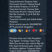 Hello friends, let me introduce myself, my name is UMI MAHMUDAH from a member of West Cambodia. Today, April 6 2024, my team and I took part in the SOLIDARITAS 18 Event, in commemoration of "Indonesian Scout Father's Day, R.A. Kartini, and Idul Fitri". In the Telegram group. There were 3 resource persons for this activity, namely, Ms. Fadila Rahmaningtyas S.Par (Purna Chair of the Saka Tourism Council of Sleman DIY), Ms. Aipda Hari Purwanto S.H. (Pamong Saka Bayangkara Tegal City Police) "Traffic Safety", Kak Anjar Pramuningtias S.Pd (Pamong SBH PKM Wonosalam 1.and Enforcement Supervisor MA Sholahudin Demak) "Managing Active, Creative and Innovative Bases". Here we all get a lot of knowledge, from big brother. Starting from obeying traffic regulations, as well as managing creative and innovative vehicles. This material is very useful for all of us.