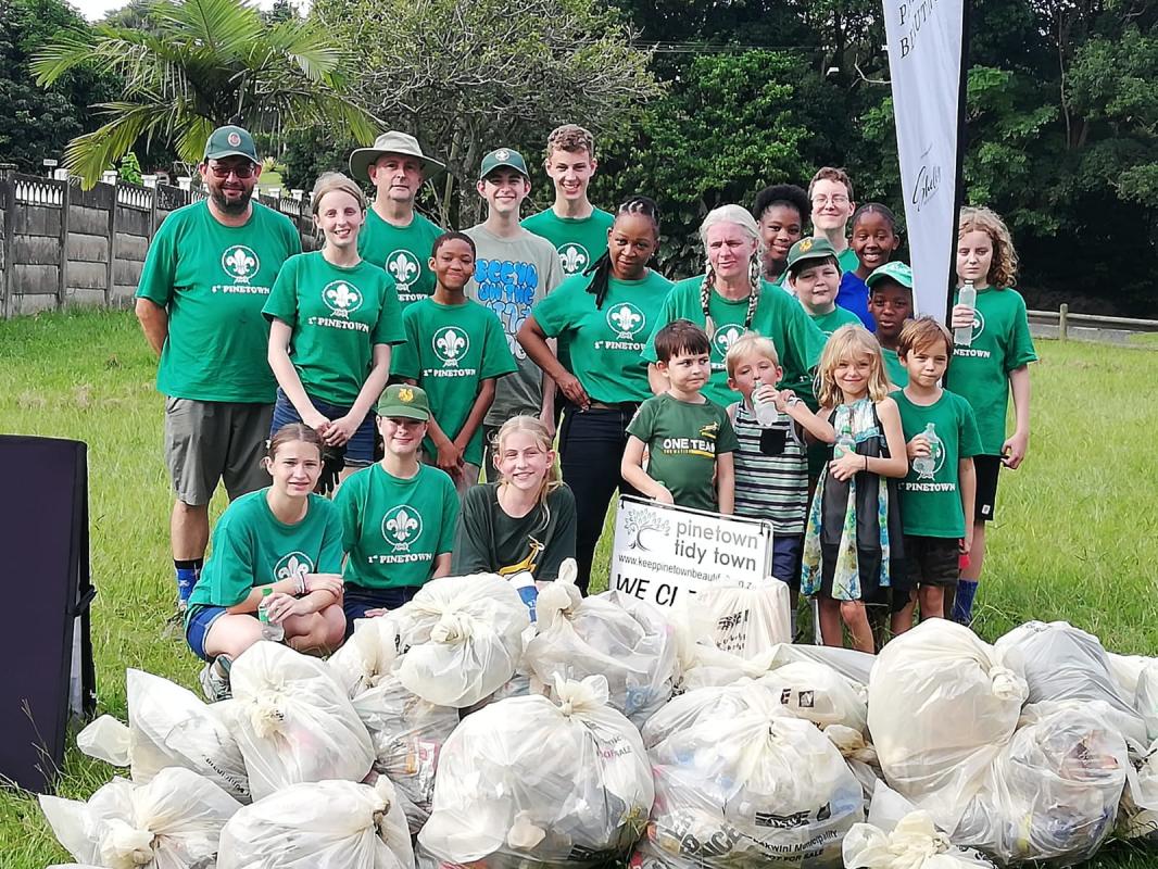 One of our Troop Scouters has been in contact with a local group called Pinetown Tidy Town, who organise litter clean-ups in our area. We heard from them how much work needs to be done in keeping our town clean. We suggested to them that we could tackle a park which is next to a large high school and ends up filled with a lot of the students' rubbish. Our goal was to tidy the park, and we found we had so many helpers that we were able to reach all the way to the end of all the adjoining roads.