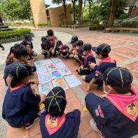 學校每周五的早晨8點鐘開始,就是狼寶寶與小狼們的集會時間,這次學校裡的老狼們使用繪圖著色的教學模式,讓孩子們了解世界和平意義,看到孩子們投入與用心地把和平理念融入畫作,專注的神情令人動容,童軍因理解和平意義減少爭吵,落實團隊合作的快樂,在此次活動中展露無遺。