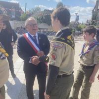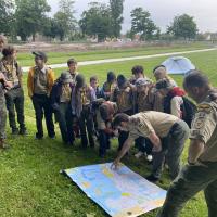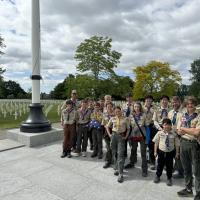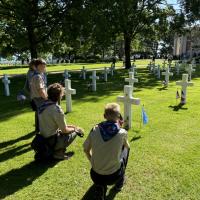 Scouts researched D-Day. To make this trip affordable, Scouts were involved in the financial planning of the trip and campout taskings. Because of the close relationship with the host town, the Troop was immersed in the local events, guests of honor at ceremonies: Participation in British War Cemetery ceremonies, special guest at Cérémonie Franco-Norvégienne, lowering of flags at Brittany Cemetery, Normandy American Cemetery visit.