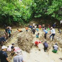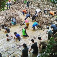 Kami membersihkan sampah yang berada di aliran sungai sedikit demi sedikit, sampah yang kami bersihkan mulai dari sampah plastik, sampah rumah tangga dan sampah daun dan batang pohon yang hanyut. masyarakat setempat pun turut membantu kami dalam membersihkan sungai