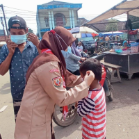 Kami mensosialisasikan 5M di beberapa tempat yang ramai seperti pasar dan stasiun kereta api. Kami membawa papan seruan agar terlihat oleh masyarakat untuk selalu menerapkan 5M, selain itu kami pun membagikan masker medis