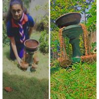 We built animal feeders according to our own creative ideas using recycling materials with the help of our parents in our home gardens.