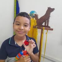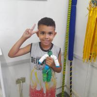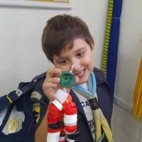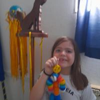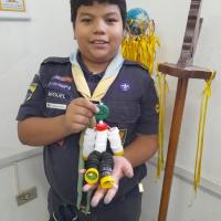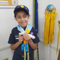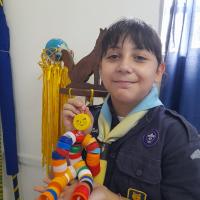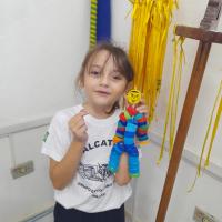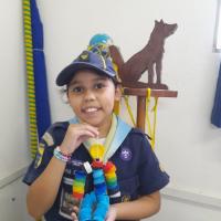Para motivar os lobinhos e mostrar que podemos reutilizar materiais em nosso cotidiano, uma parte das tampinhas arrecadadas foi utilizada para a confecção de um boneco.