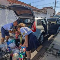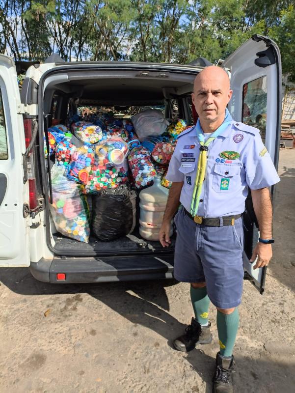 Inspirados por isso, os lobinhos da alcateia Baloo arrecadaram tampinhas de garrafas plásticas.