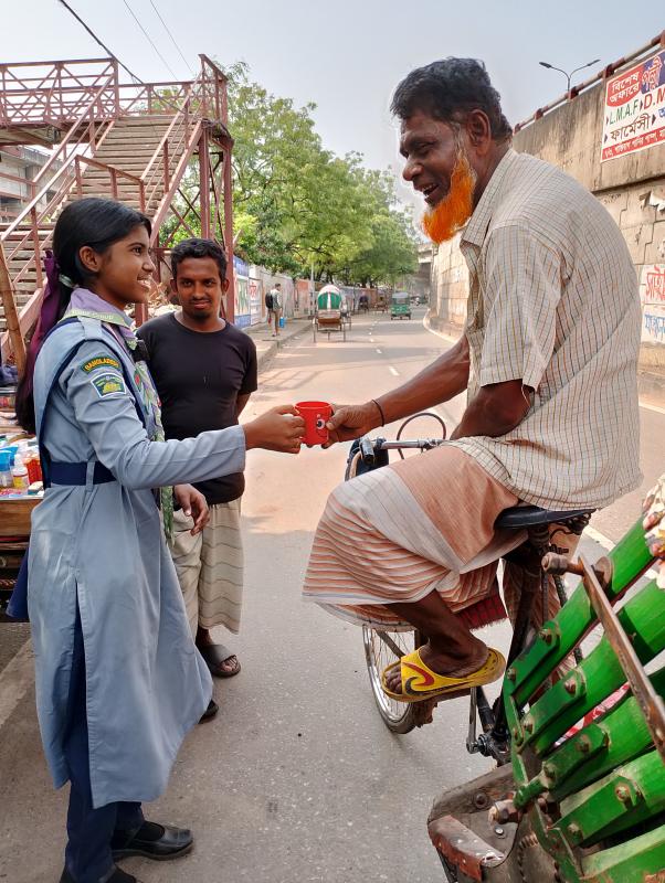 বাংলাদেশ স্কাউটস সদস্যরা সর্বদাই মানুষের সেবা করে থাকে। এই গরমে স্কাউটরা ধনী-গরিবের মধ্যে কোনো ভেদাভেদ না করে তাদের মাঝে বিশুদ্ধ পানি বিতরণ করতে। কারণ, গরমে মানুষের অবস্থা খুব খারাপ। তাই তাদের কষ্ট কমাতে বিশুদ্ধ পানি বিতরণ করে।