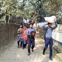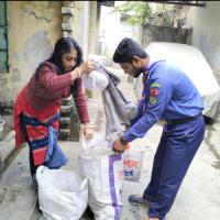 বাড়ি গিয়ে শীতবস্ত্র সংগ্রহ ও শীর্তাতদের মাঝে বিতরণ