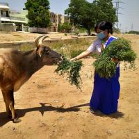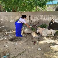 बेज़ुबान जानवरो को प्रतिदिन चारा डालकर सेवा कार्य करती यूनिट लीडर सुमन चारण