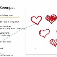 Program yang mengajarkan para peserta bahasa Thailand, moderator yang mudah berinteraksi dan berkomunikasi dan 2 ahli panel yang sangat berilmu dalam bidang bahasa Thailand. Turut dihadiri oleh beberapa ahli Pramuka Indonesia... Di akhir program, para peserta dapat memahiri dan menguasai perkataan-perkataan dan ayat-ayat mudah dalam bahasa Thailand... Kesimpulannya, kita boleh saja memahiri dan menguasai bahasa lain dengan mudah menggunakan jalur internet atau atas talian ini, cumanya perlu rajin dan konsisten supaya menjadi fasih dan sebahagian dari kita.