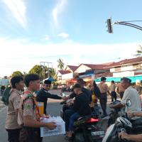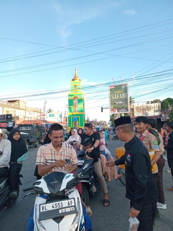 Aceh Selatan, Kota Fajar 25/03/2025. Puluhan anggota Pramuka Kwartir Cabang Gerakan Pramuka Aceh Selatan yang berasal dari berbagai Gudep di Kluet Utara dan Kluet Selatan menggelar aksi peduli dan solidaritas dengan membagikan ratusan takjil. Pembagian takjil dipusatkan disimpang empat Kota Fajar Kluet Utara, Selasa 25 Maret 2025 menjelang berbuka puasa.