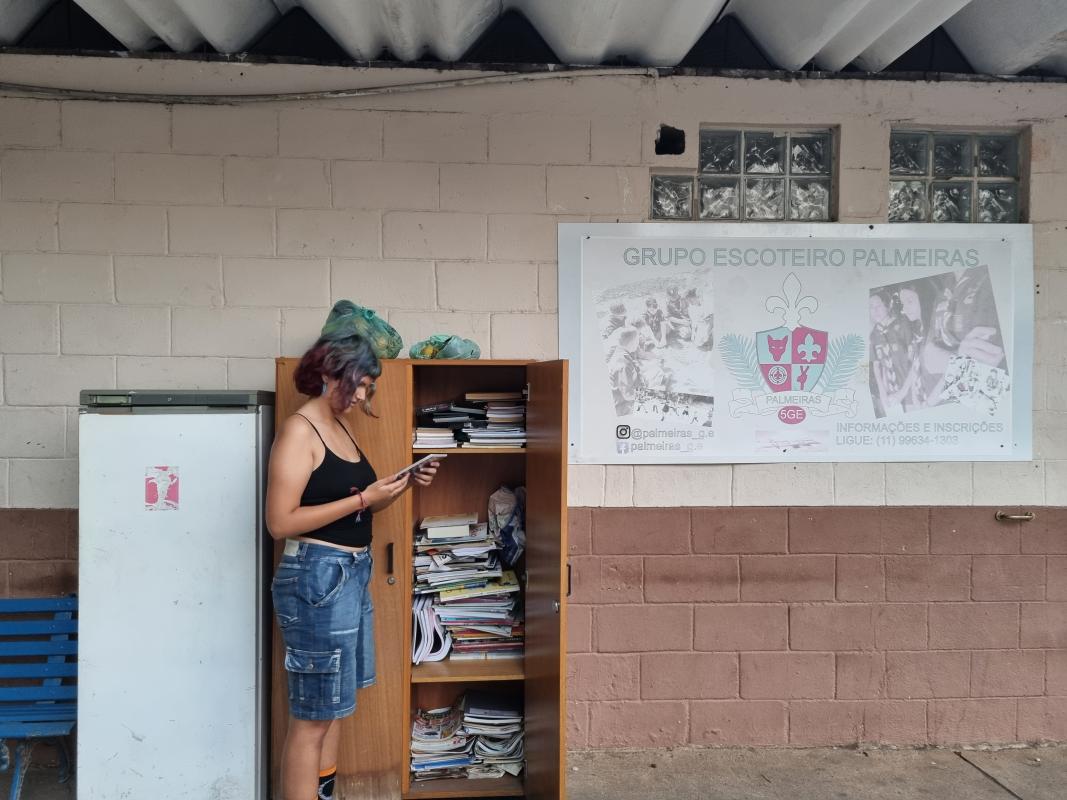 Disponibilizar educação para todos os usuários do Parque São Domingos, sede do Grupo Escoteiro Palmeiras 005, Rua Pedro Senargiotti, 125 dentro - Parque São Domingos, São Paulo - SP, 05124-05, através da leitura de livros disponibilizados em armários.