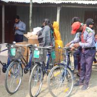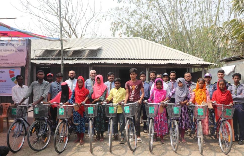 In lalmonirhat char there is a primary school named Smrity Roy Crystal Scout Primary School. Some of the students of that school passed from there and got admitted into high school in lalmonirhat. From their home the school was too far and they can not afford the transportation costs.That's way bicycles were distributed among them.