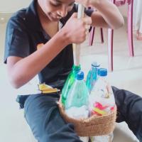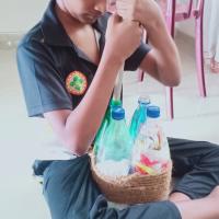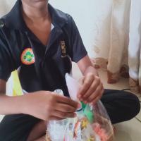 • So I collected scrap polythene bags and some plastics bottles in my house to do my project. On 22rd of January 2021 I started my project with scrap polythene bags that I had collected. I successfully completed my project on 26th of January 2021.