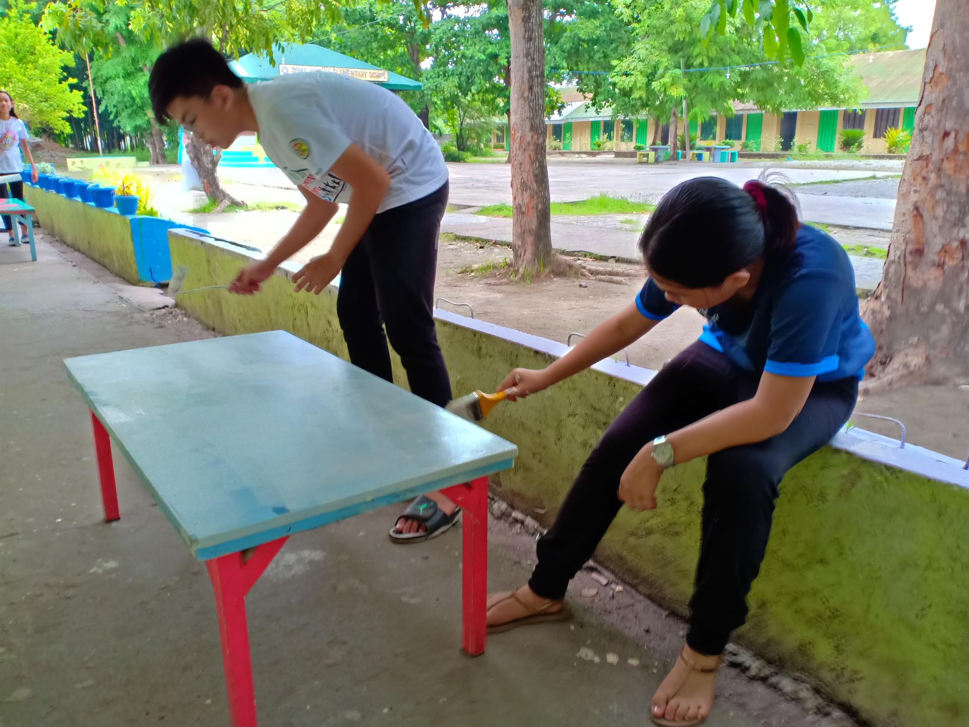 Besides from the renovating and establishing a Reading Center, the Scouts also took time painting bulletin boards, bookshelves, chairs, tables, as well as helping teachers in their tasks during the Brigada Eskwela. Throughout this week, the team also interacted with the students and faculty DAES as they also do their respective tasks during the Brigada Eskwela.