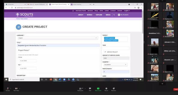 Online Central crew meeting on Ring Badge, Scout.org and the usage of Scouts App along with criteria's of Ring Badge. The crew meeting was held with 10 units of 13th Hussars ORSG in two time segments and two of our head trainer was appointed to complete this meeting and shared their experience with us and they give us tips on how we can do better scouting.
