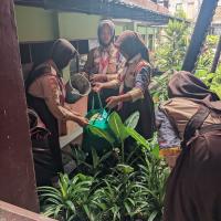 mengamalkan kode etik pramuka dasa darma kedua Cinta alam dan kasih sayang sesama manusia.