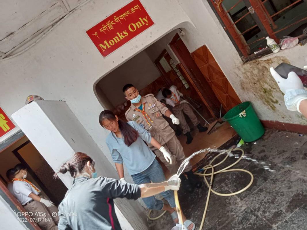 Our project started early in the morning at monastery where the monk were busily studying so they dont have time to do other chore we volunteers to clean their toilet with Bhutan Toilet