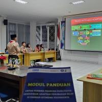Conducted by technical guidance method with the delivery of specific material from various elements of resource persons and practice for making more specific learning modules.