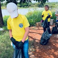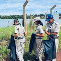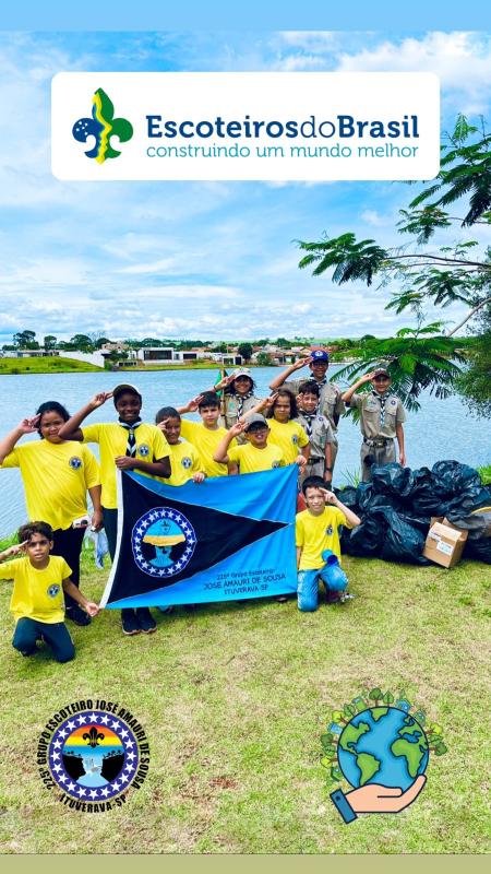 Os jovens do grupo escoteiro realizaram coletas de lixo ao redor da represa municipal, ponto turístico da comunidade em que vivem.