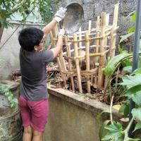 - For this I used bamboo sticks to construct the outer structure of the compost bin.