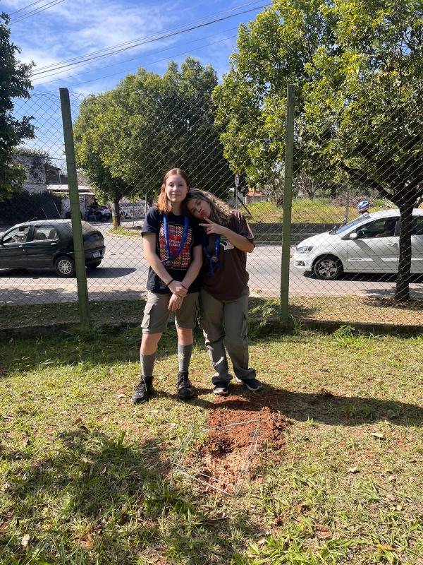 Queiramos fazer uma insígnia e ficamos pensando em alguma que combinasse com o nosso dia a dia. Aí vimos o tanto de resto de comida que era jogado fora nas nossas casas e tivemos a ideia da composteira, porque aí usaríamos esses restos de comida e também seria útil para plantar temperos