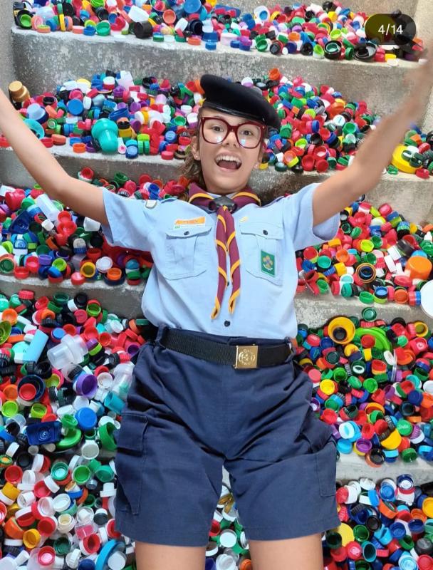 Juntando tampinhas plásticas com o auxílio de familiares, amigos, vizinhos da comunidade