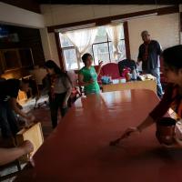 Comenzamos el sábado 6 de abril, nos tomó 2 sábados lijar todos los muebles de una casa y otros 2 sábados para pintar los mismos muebles de la casa, usando así 8 sábados comenzando desde las 9 de la mañana hasta las 5 de la tarde, terminamos la labor de los muebles el 25 de mayo, comenzando así la nueva labor de lijado de la panadería el 1 de junio, nos tomó lijar la panadería completa dos sábados y pintarla un sábado, terminando el proyecto el 15 de Junio, en total lijamos 48 sillas, 4 estantes, 4 mesas, 4 livings y 1 cocina.