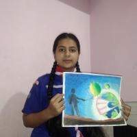 I draw the painting in my drawing book , In this painting the earth wear a mask nd a man protect her .