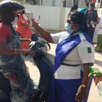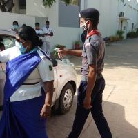 scouters,guiders and Rover's of Salem Educational district were rendered thier service in paper valuation center, shri Swamy metriculation center, shri Swamy metriculation school, Salem by checking temperature and providing hand sanitizer to the staff members at the center and requested them to were Mask. our service were highly appreciated by district secretary BSG dist.association Salem,chif Educational officer and district educational officer (Salem edu.dist).