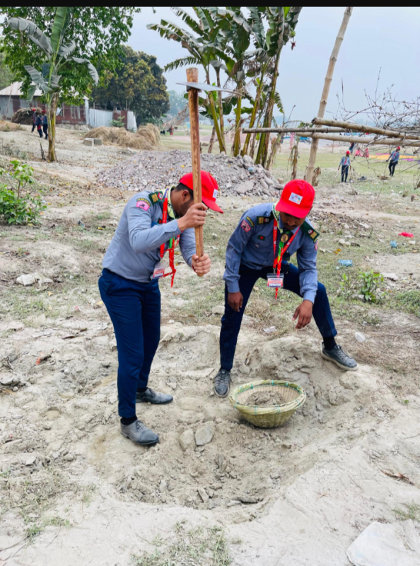 "This campaign was undertaken in a village near the Hard Point area of Sirajganj, where the road had been severely damaged, making daily movement difficult for the villagers. In response, a group of Rover Scout members came together as a team and repaired the road, easing transportation and improving the villagers' quality of life."