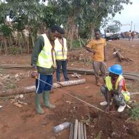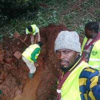 L’eau comme source de vie dans le village de Balengou, nous avons réaménagé un point d’eau potable.