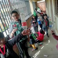 Se recolecto la mayor cantidad de botellas plasticas, de todos los colores, tamaƱos y formas, se les corto la base y se armo columnas, una encima de otra, estas columnas una al lado de otra, amarradas a un armazon prediseƱado llegaron a ser las paredes de un invernadero