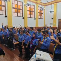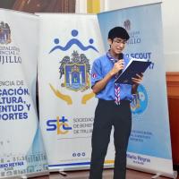 Los Scouts de Trujillo,en el Día Mundial de la Paz, abordando la problemática de la violencia en la ciudad. Contaron con el apoyo estratégico de la Municipalidad Provincial de Trujillo. Los scouts recibiendo formación en liderazgo y organización de eventos. El encuentro, de tres horas, tuvo lugar en la Beneficencia Pública de Trujillo, con la participación de jóvenes de instituciones educativas locales, quienes asistieron a discursos y conversatorios preparados por los scouts