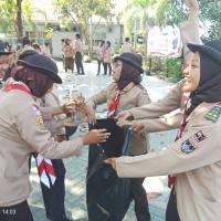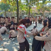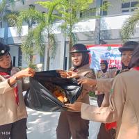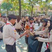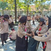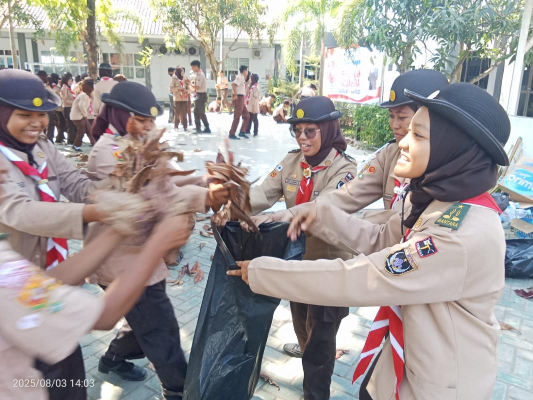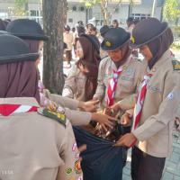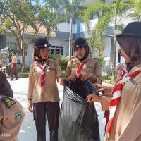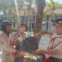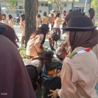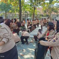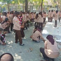 permainan yaitu kita kumpulkan 100 peserta, kita bercerita bahwa nenek moyang kita seorang pelaut suka menangkap ikan, bayangkan tempat ini adalah lautan, silahkan kakak tangkap ikannya, dan lelang di TPI, alhasil seluruh peserta berebut mengambil sampah daun dan memasukkan ke wadahnya