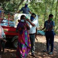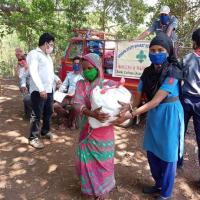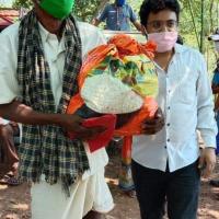 Distribute the packet Among the poor people with mask & sanitizer, of our adult village .