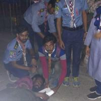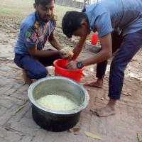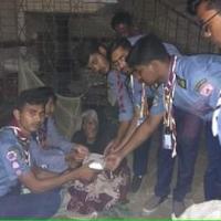 Bangladesh Scouts, Kushtia District Rover distributes food among helpless and poor people on the occasion of BP Day. This food is distributed among the people of different places in Kushtia city including the people lying at Kushtia railway station