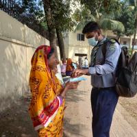During the COVID-19 pandemic, we organize mask distribution programs at kamlapur railway station to create public awareness.