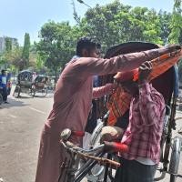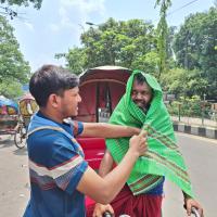 As Bangladesh faces intense heat, causing severe dehydration and difficult road travel, many depend on rickshaws for their livelihoods. To assist them, we've initiated a towel distribution campaign. These towels act as a shield against the sun and provide a way to cool down when damp, showcasing our dedication to supporting them through the heatwave.