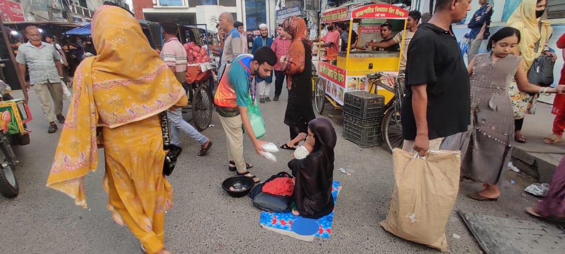 আমরা ৬ জন মিলে দল গঠন করি এবং দায়িত্ব ভাগ করে নিই। প্রতিদিন নির্দিষ্ট এলাকায় গিয়ে প্রায় ২০০ জন সুবিধাবঞ্চিত মানুষের মাঝে খাবার বিতরণ করি। মোট ৩ দিন ধরে এই কার্যক্রম চলে। খাবার সংগ্রহ, প্যাকেট করা ও বিতরণের কাজ আমরা সমন্বিতভাবে করি। প্রতিদিন সকালেই পরিকল্পনা ঠিক করে বিকেলে বিতরণ সম্পন্ন করি। আমাদের লক্ষ্য ছিল সুশৃঙ্খলভাবে সবার কাছে পৌঁছানো এবং “একটি খাবার, একটি হাসি”—এই বার্তাটি বাস্তবে রূপ দেওয়া। মানুষের যেন কোনো লজ্জা না লাগে, তাই আমরা যতটা সম্ভব কম ছবি তোলার চেষ্টা করেছি।