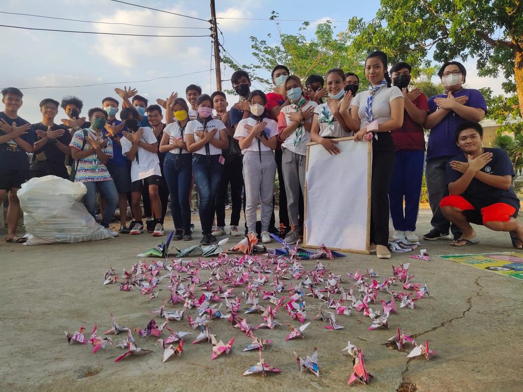 we have been inspired to make this our project so that we can help the government clean up election paraphernalia immediately because it is causing clutter around the road with trees and vacant lots that have damaged our environment, and the construction of paper crane origami is what we thought we would do so that it can be recycled and so that we can promote the messenger of peace initiatives.
