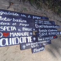 Los carteles para el parque se hicieron con materiales reciclados de la comunidad.